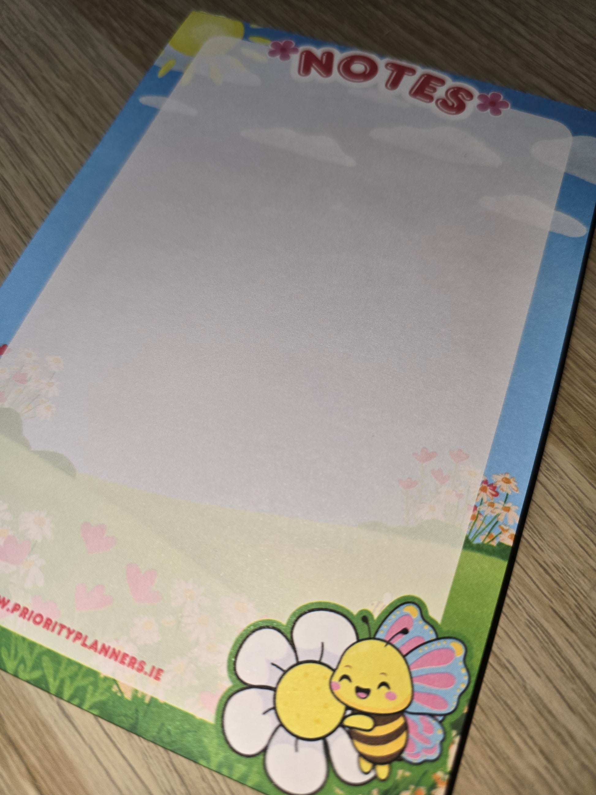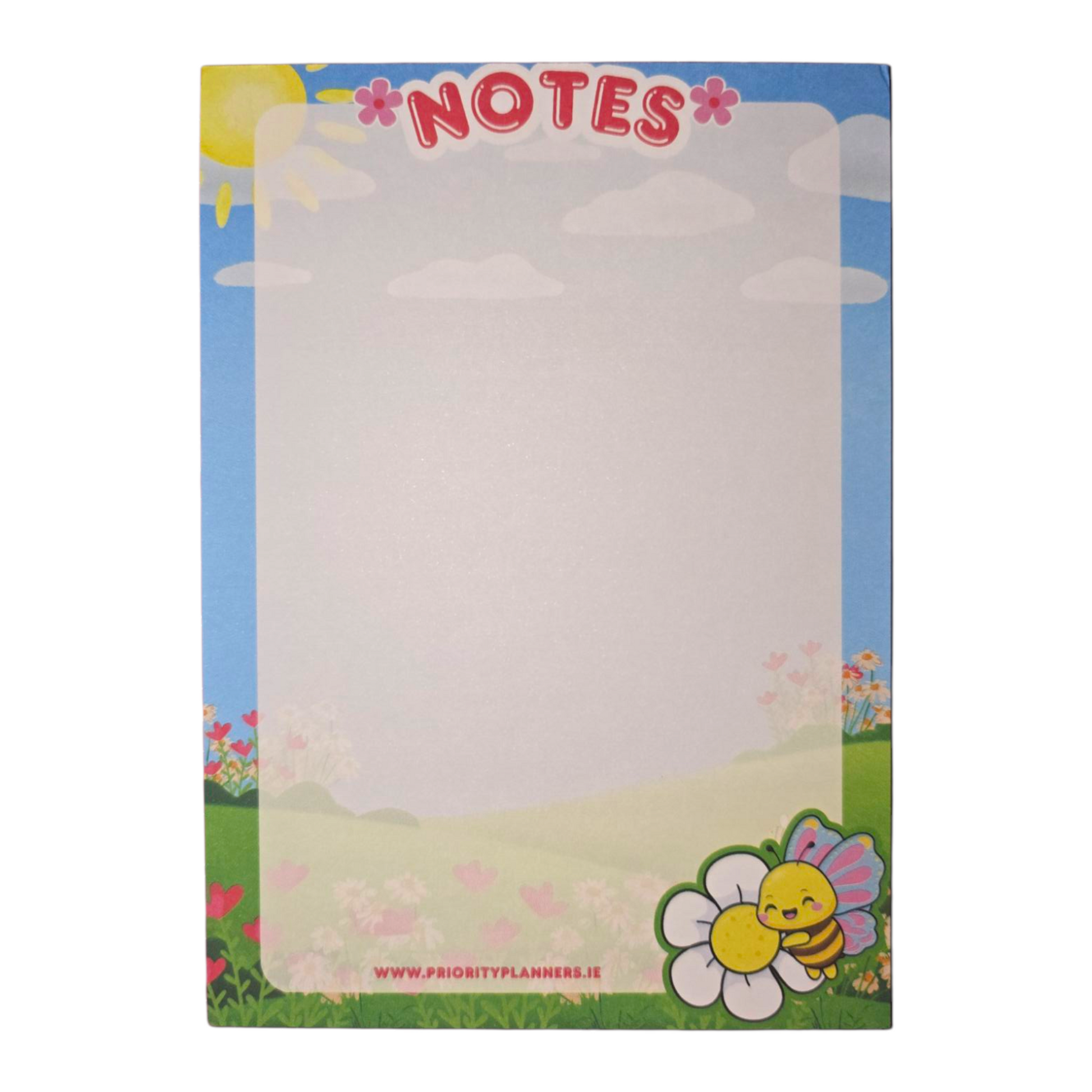 Capture ideas, reminders, or happy doodles on the go with this adorable A6 notepad featuring Flutterbee nestled in a sunny meadow. Perfectly pocket-sized and bursting with charm, this notepad is ideal for quick notes, journaling, or tossing in your bag for moments of inspiration.
