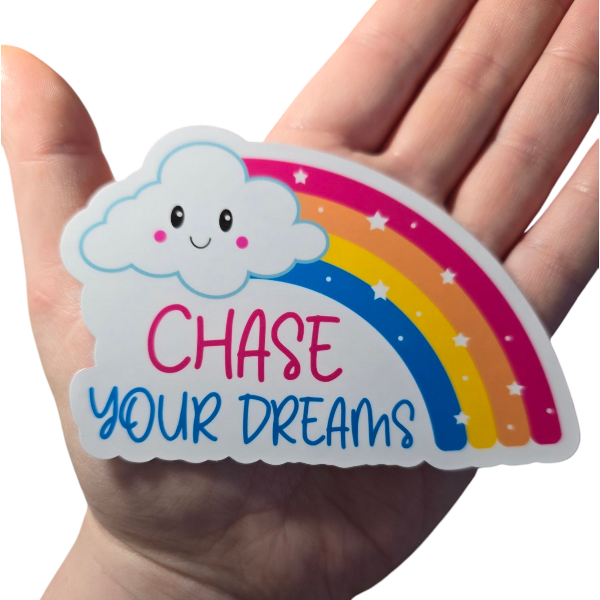 Chase Your Dreams Sticker – 2” Matte Die Cut Rainbow Cloud Vinyl – Water Resistant – Motivational Sticker – Kids Sticker – Planner Sticker – Cute Aesthetic