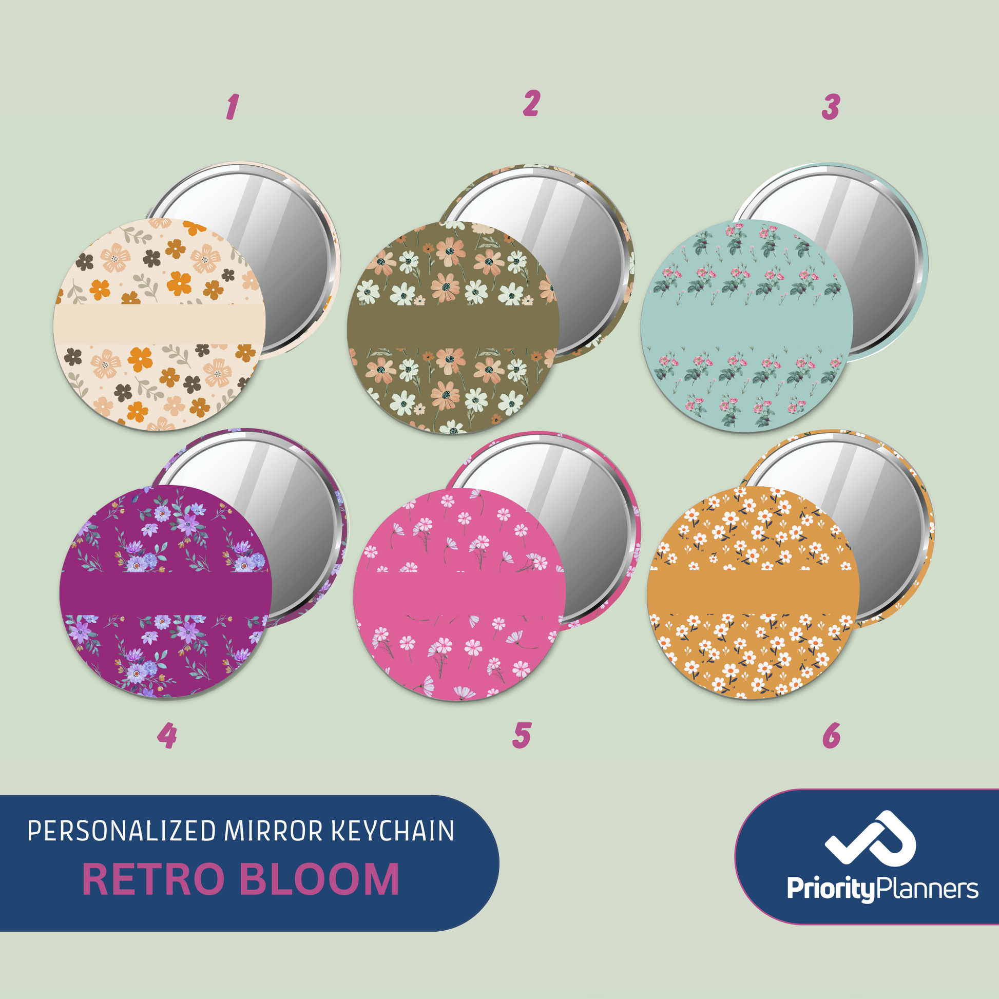 Mirror Keychain- Retro Bloom Collection