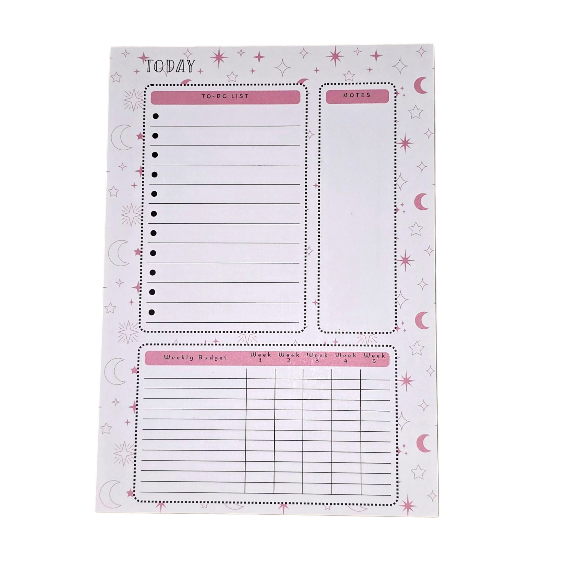 Stay productive and organized with this A5 Today Planner Notepad, designed to help you manage your daily schedule, tasks, and priorities. This batch was misprinted with a monthly budget section instead of a daily budget, so we're offering them at a discounted price as part of our Oopsie Originals sale!